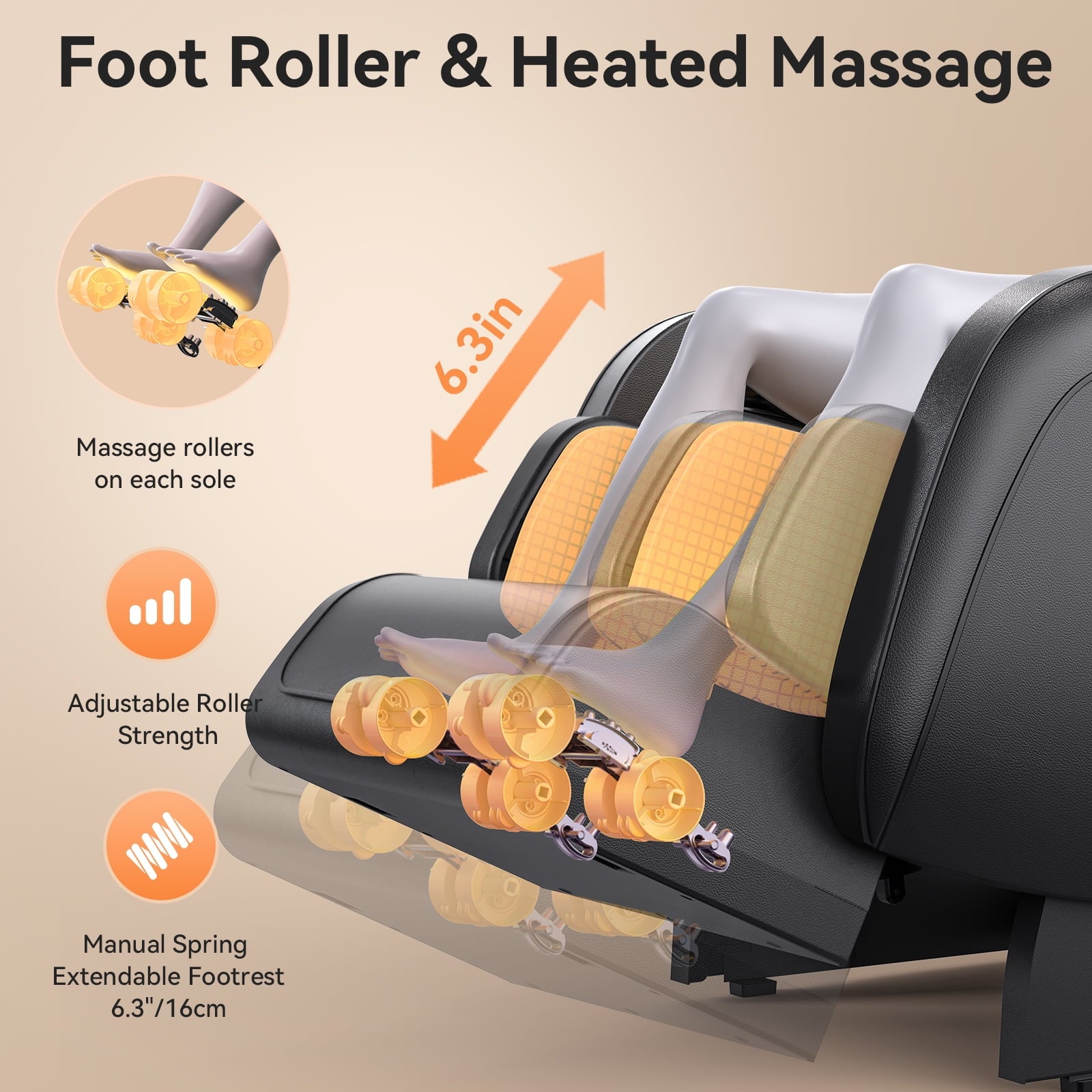 - [Ultimate Relaxation for Legs and Feet]: The calf massage position of this massage chair can be individually adjusted to the user’s size to ensure customized relaxation. The lower leg friction and air pressure massage effectively relieve leg pain and joint fatigue, providing a refreshing feeling. With rollers gently massaging your feet and promoting blood circulation, you will experience a relaxing foot massage that reaches all the way to your toes.