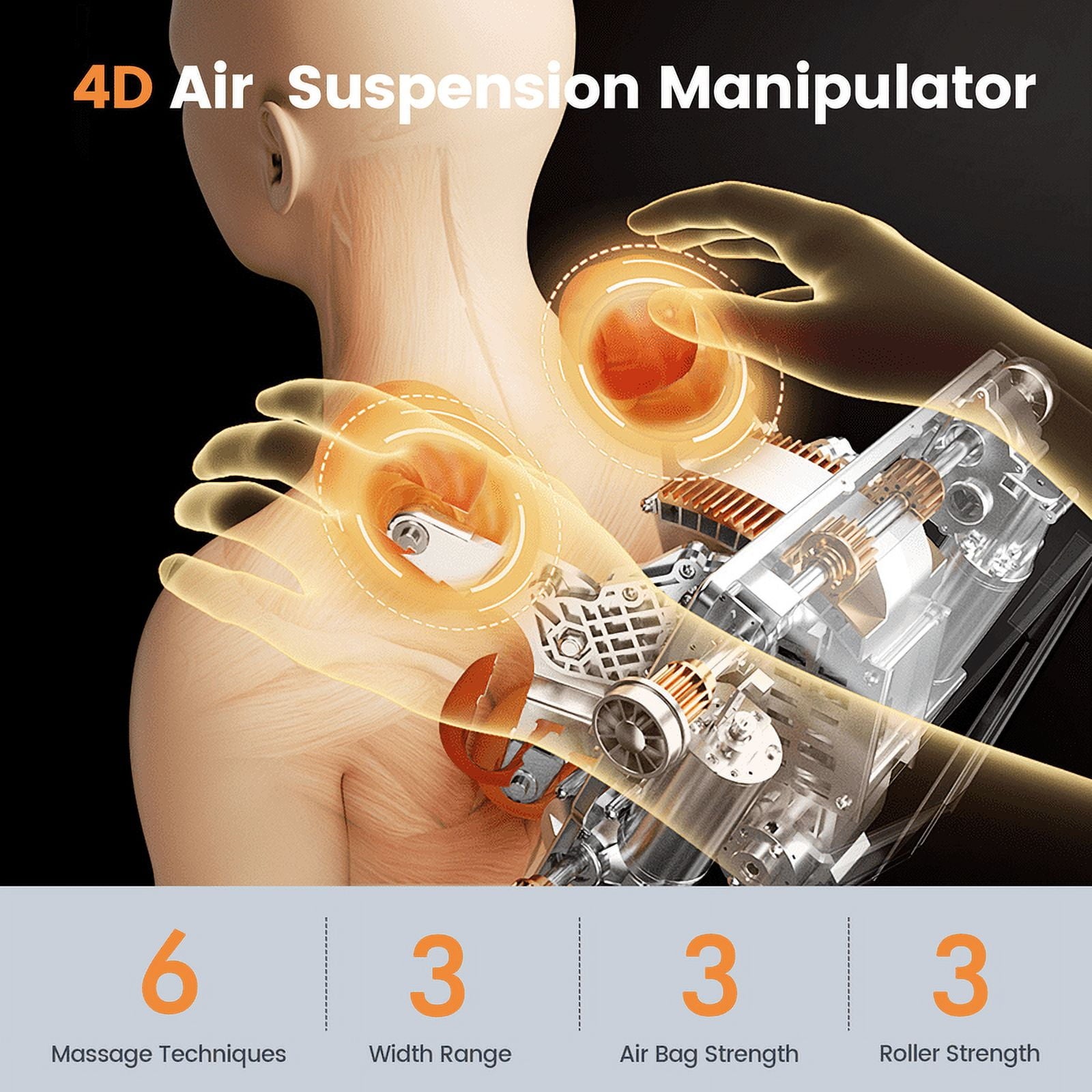 [4D Air Suspended Manipulator]: New patented 4D air suspension movement, the use of accordion-like wind box design, movement can be adjusted up and down, left and right, front and back, multi-dimensional depth massage.