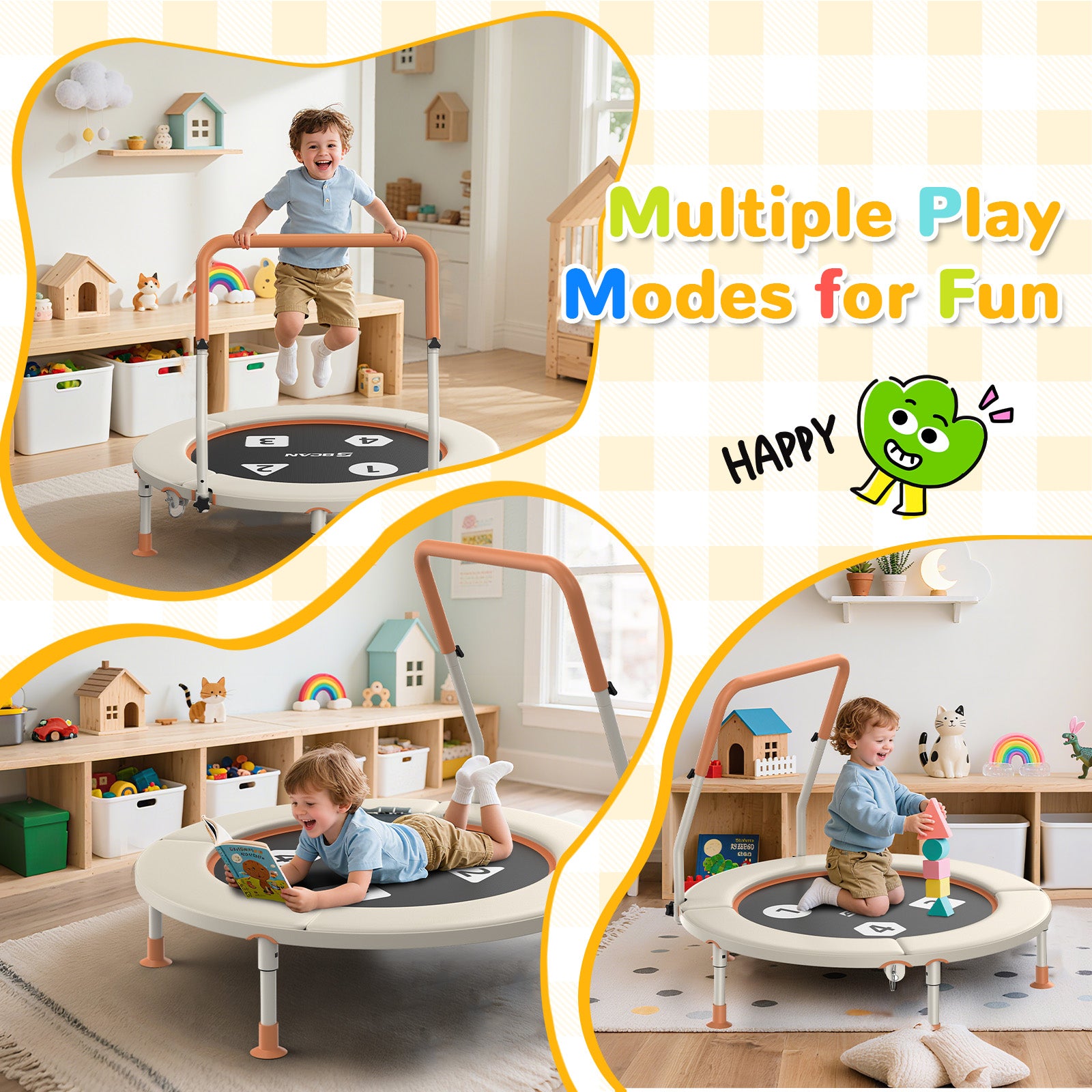 - Adjustable Handle: Designed with 2-level adjustable handle, this small trampoline is suitable for kids ages 1-6.