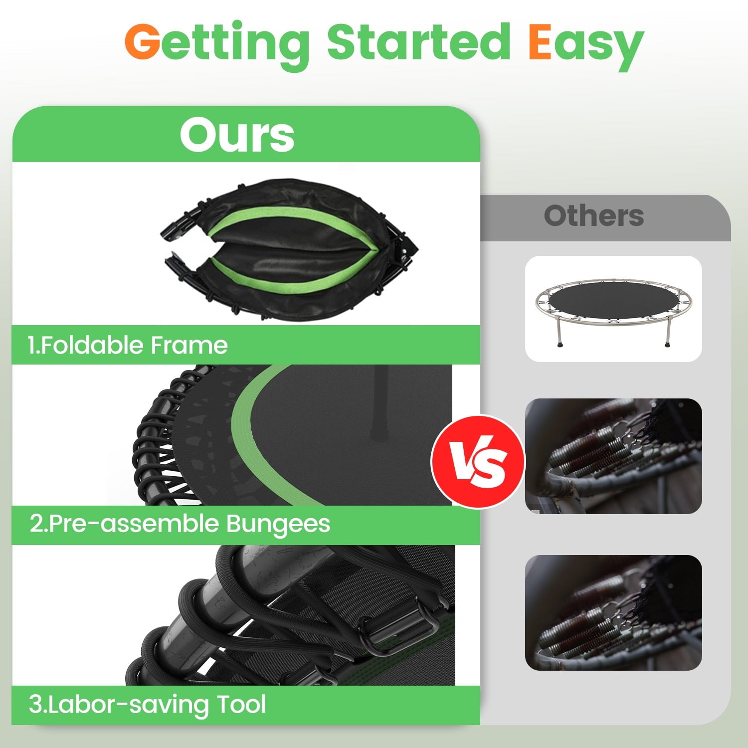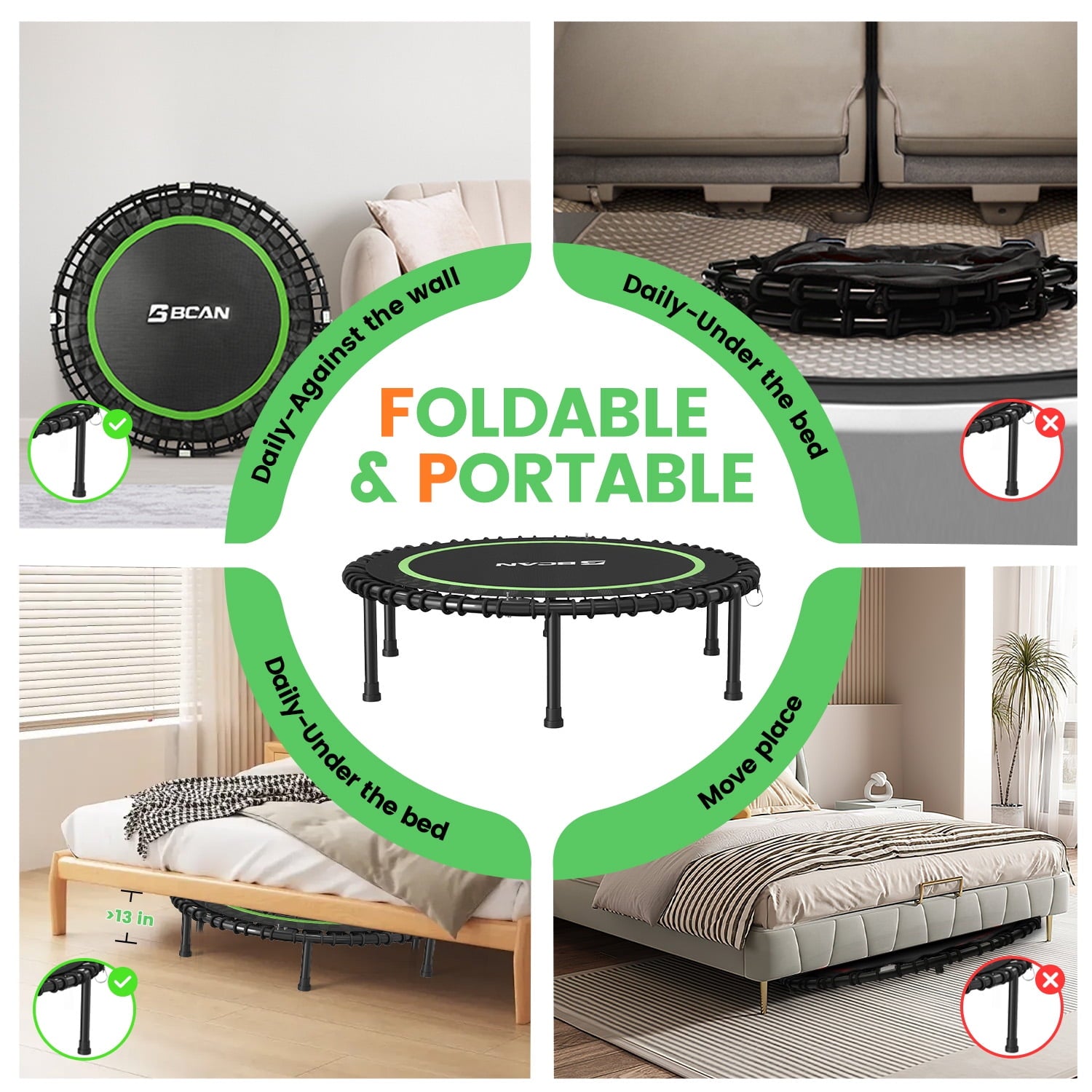 BCAN 48" Fitness Trampoline with Bungees, 550LBS Foldable Mini Trampoline