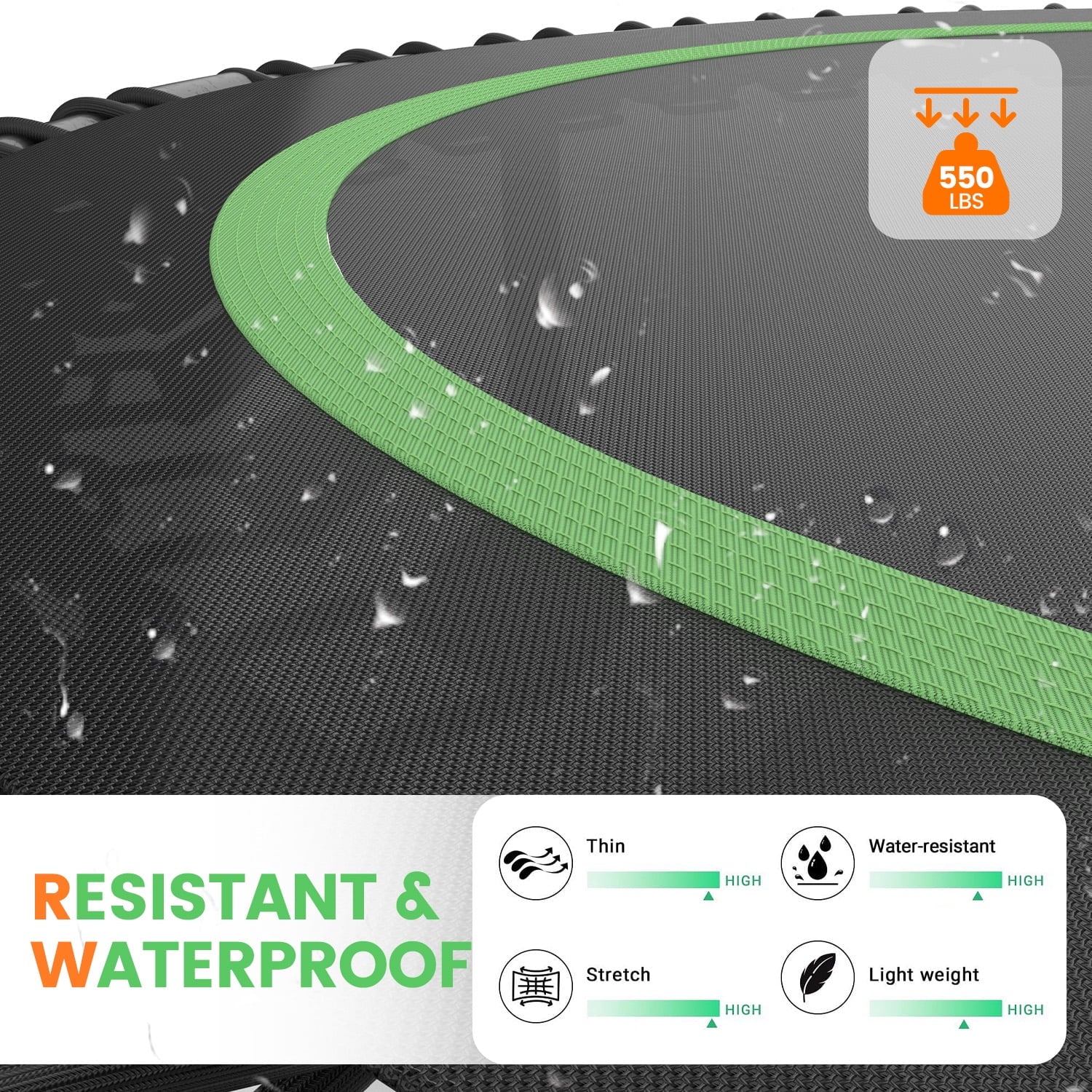 - 550 LBS Capacity: 2025 Upgraded STEEL frame structure ensures excellent strength, 40 Professional-grade BUNGEES provide strong and soft elasticity, high-strength fiber PP MAT, can bear up to 550 LBS.