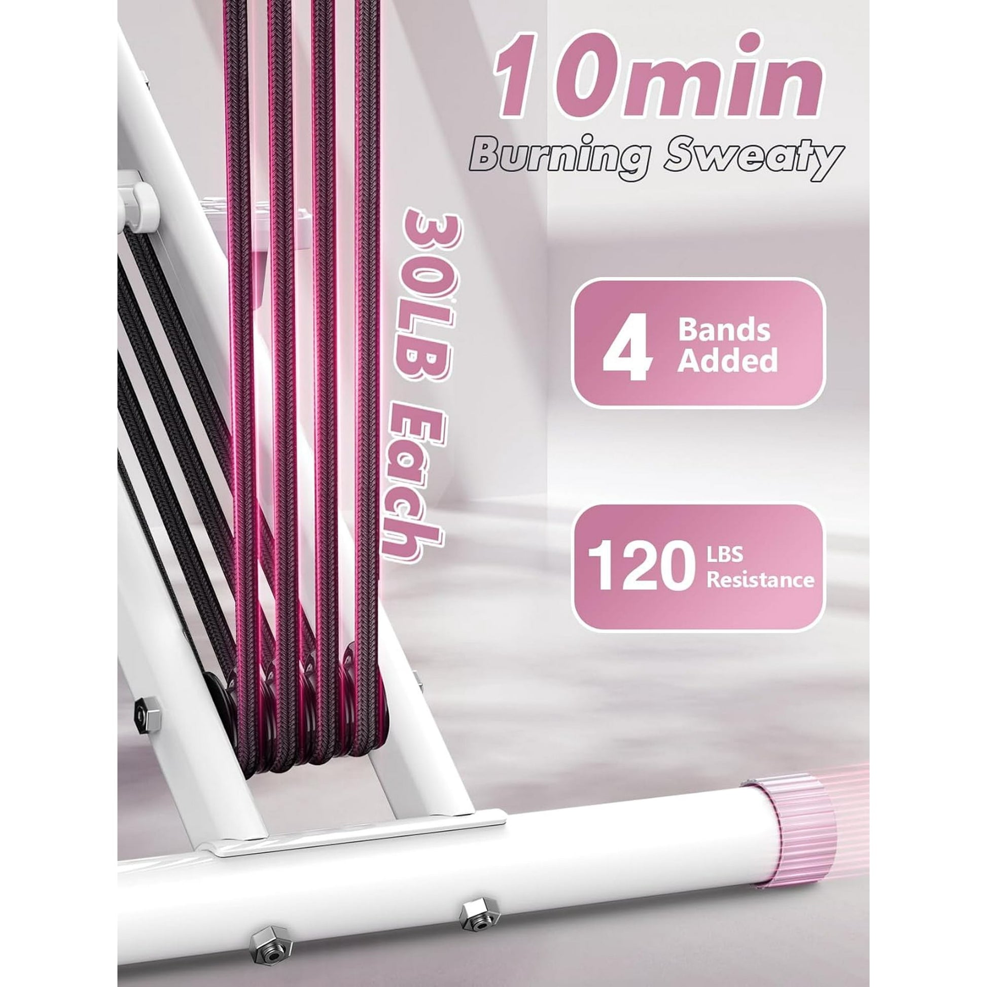 Sportsroyals Pink Squat Machine for Home,Rodeo Core Exercise Machine,330lbs Foldable,Adjustable 4 Resistance Bands,Ride & Rowing Machine for Botty Glutes Butt Thighs,Ab Back/Leg Press Hip Thrust